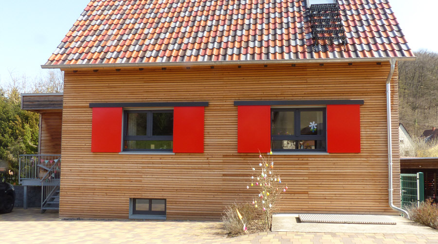Das ist mal etwas anderes ... holzverkleidetes Haus und rote