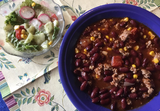 und einen Rest Maiskörner dazugeben und noch einmal würzen.