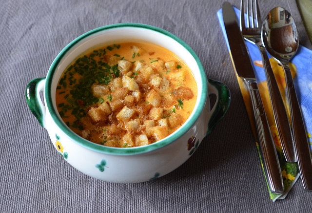 als Einlage dazu, mit frischem Schnittlauch bestreuen.