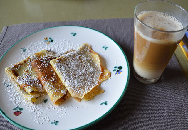 Palatschinken, gefüllt mit Nutella und Marmelade.