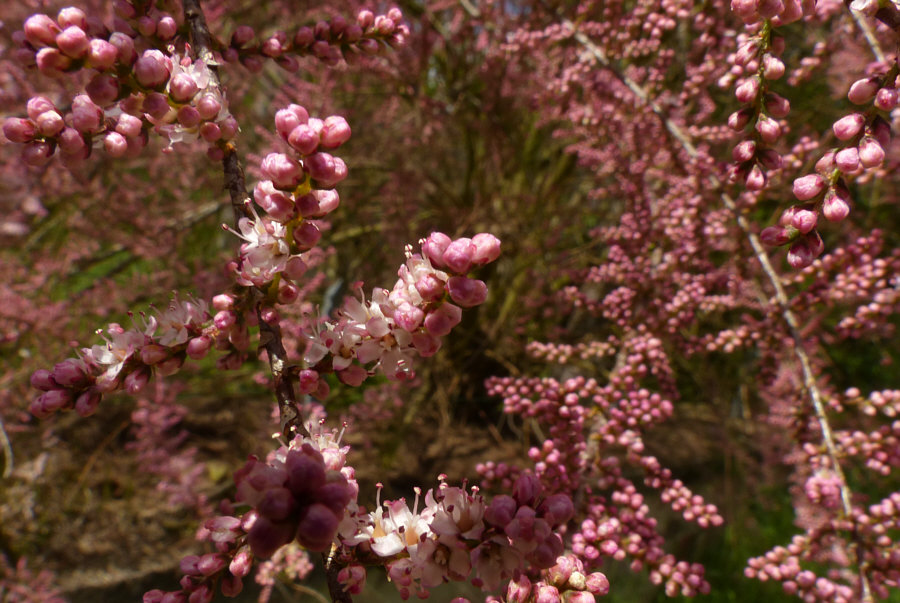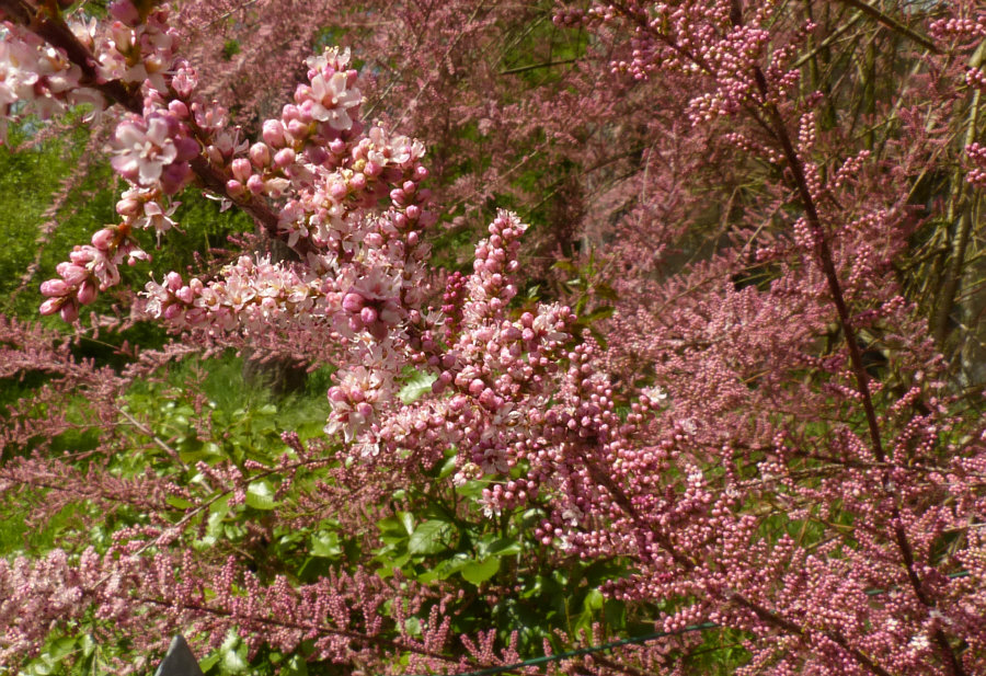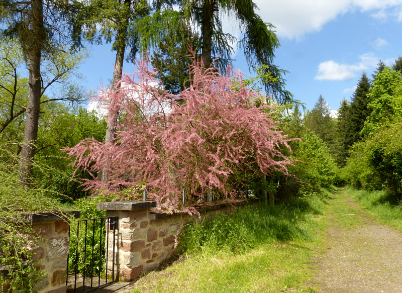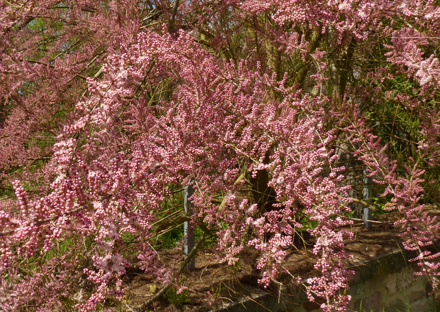 ![]() Da stehn wir nun ... mit dem Auto. Ungefähr hier hatte ich an der Seite geparkt. Wie kam ich hierher ? Nun ... ich schaute bei Google Maps, ob es irgendwo grün ist ... ein bißchen Frühlingswald und zwar dort, wo ich noch nicht war ... und so landete ich hier. Wenn ich mich nach rechts drehe ... ![]() ... sehe ich einen schönen Sitzplatz und blühende Iris. Weiter rechts ... ![]() ... ist ein ehrwürdiges altes Haus. Vor mir ... ![]() ... ist der Weg. Links eine alte Mühle und ein Fluß. Und eine alte Magnolie, eine Bank, verblühte Tulpen und ein schöner Blick aufs Wasser. Und dieser leuchtende rosa Strauch ... das ist eine Tamariske. Es gab mal eine Zeit, da wurden diese Sträucher ganz gerne gepflanzt. Heute werden sie kaum noch gesetzt ... wir dürfen uns also nur noch an den Exemplaren erfreuen, die damals gesetzt wurden und bis heute überlebt haben. Gerne schaue ich mir die Tamariske mal genauer an: ![]() Unendlich viele Blüten ... ganz klein ... geschlossene und offene: ![]() ![]() ![]() ![]() Ich hab so das Gefühl, dass das ein wunderschöner Auftakt eines ganz besonderen Spaziergangs sein könnte. Wie ein Geschenk an einem sonnigen Mai-Tag :)). [ wird fortgesetzt ] |