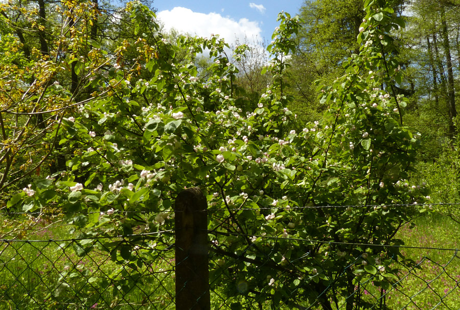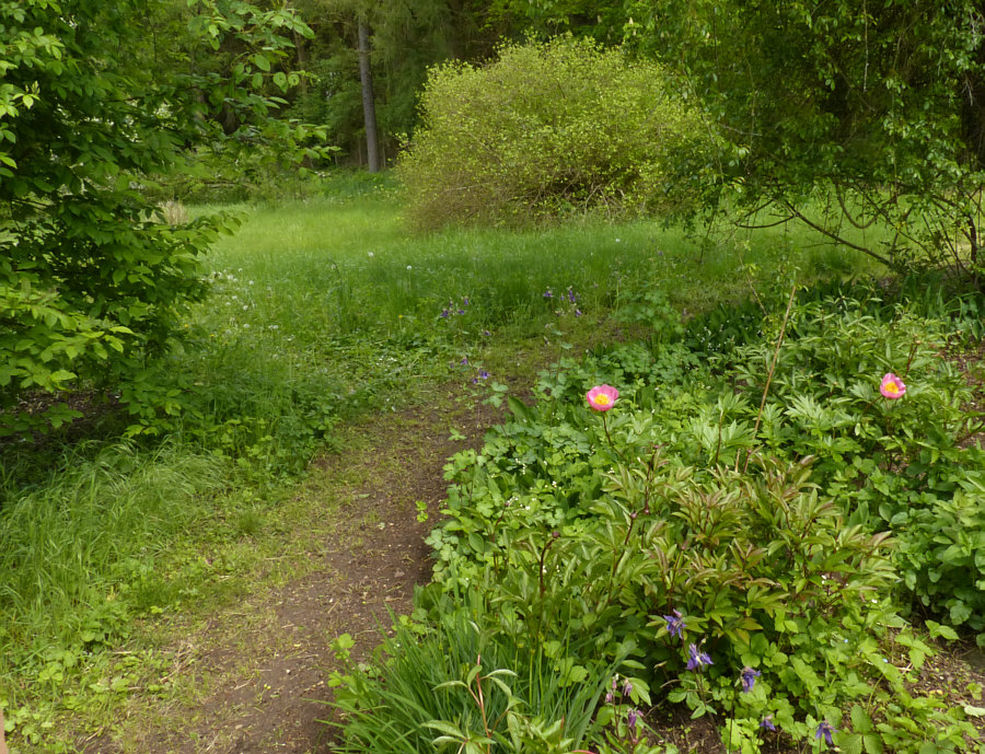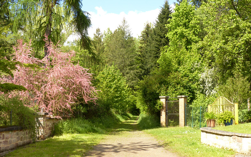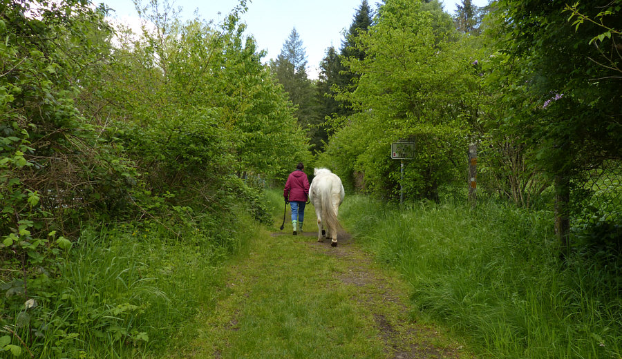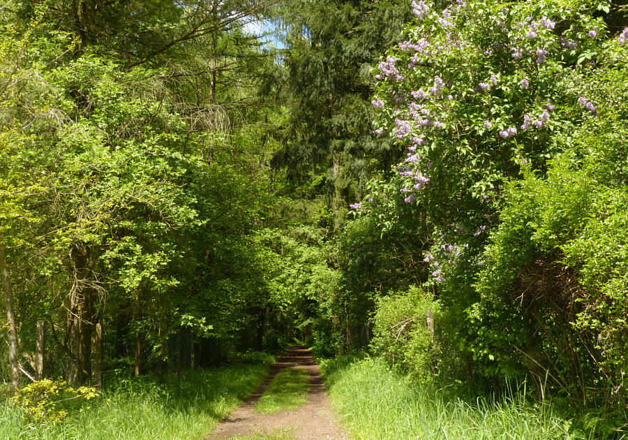 Wir sind ja immer noch hier ... ![]() ... wir sind ja nur bis zum Tamarisken-Strauch gekommen. Da rechts hinterm Eisentor scheint ein alter Garten zu sein ... ![]() ... mit einem schönen Päonien-Stock: ![]() Geräusch kommt ... zur Seite gehen ... Geräusch läuft vorbei: ![]() Die beiden gehen zu einem Pferdeplatz, der da vorne links liegt. Dort trifft sie sich mit einer anderen Reiterin und einem anderen Pferd. Ein traumhafter Weg, auf dem wir stehen ... ![]() ... rechts blüht der Flieder, links ist der Reitplatz und neben dem Reitplatz eine traumhafte naturbelassene Wiese: ![]() ![]() ![]() Nochmal zurück zum ersten Wiesenbild ... ![]() ... da sehen wir links ein paar Blüten. Ich weiß nicht, welche Blüten das sind ... aber das ist ein ganz zauberhafter Baum, der da steht: ![]() ![]() ![]() ![]() Also ... links der Reitplatz, der Blütenbaum und diese Wiese ... auf der rechten Seite des Weges ... ... der hintere Teil des alten Gartens ... ![]() ... ein wunderbares Stück alter, verwilderter Rhododendren-Garten. Wir treffen später die Reiterinnen wieder und fragen mal nach dem Garten und dem Wald. Das ist ein altes Herrenhaus ... die Besitzerin lebt noch und ist mittlerweile über 80 Jahre. Und der Wald steht unter Naturschutz, hier darf also nichts verändert werden. Und durch diesen Wald ... ![]() ... führt nun dieser Weg, der uns auf wunderbare Weise einlädt, hier weiterzugehen. [ wird fortgesetzt ] |