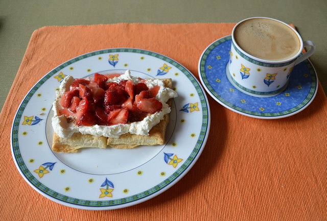 Schnelle Nachspeise - Blätterteig mit Sahne und Erdbeeren.