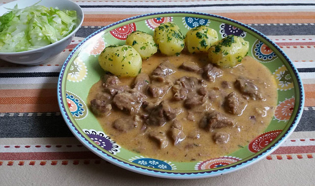 Ich hatte ein Stück Gulaschfleisch zuhause und habe sonntags draus ein