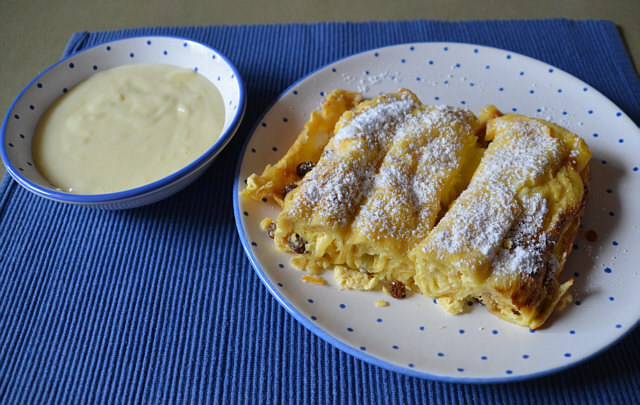 Dazu eine Vanillesoße und fertig ist die süße Hauptspeise.