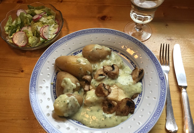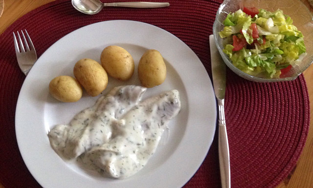 Am Montag gab es junge Kartoffeln, Hering in Joghurt mit Dill u. einen