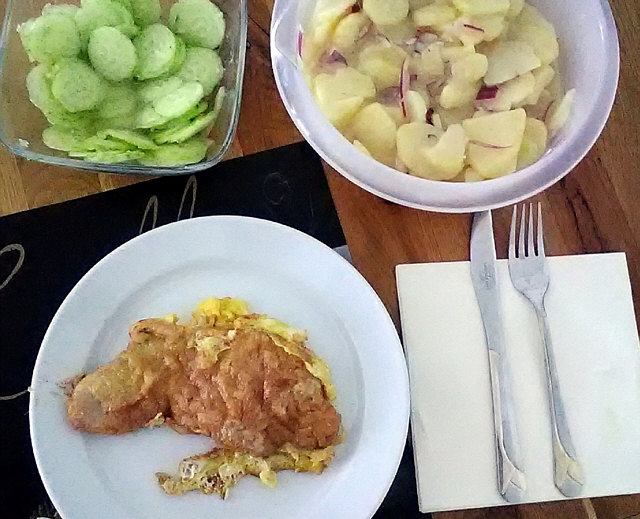 Pariser Schnitzel mit Kartoffel- und Gurkensalat