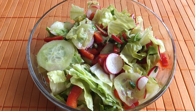 Hinterher gab es noch einen gemischten Salat: Gurke, Radieschen, Paprika