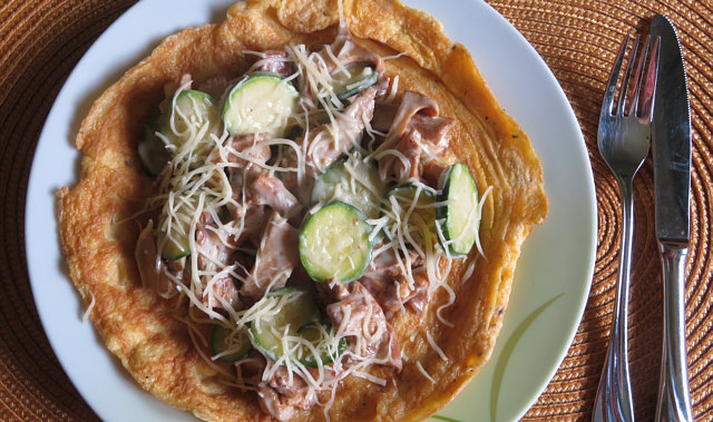 Omelette mit Pfifferlingen und Zucchini.