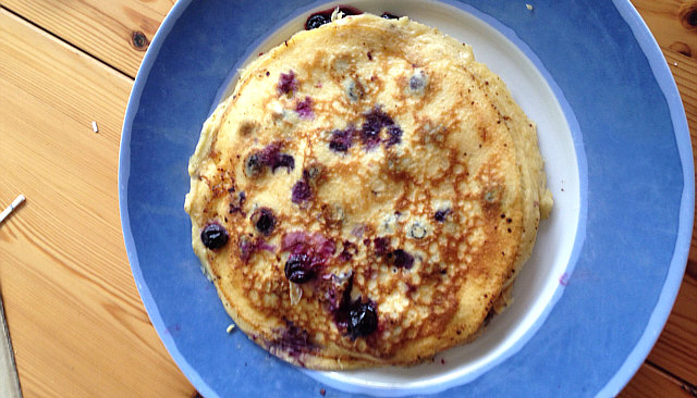 Am Mittwoch Pfannkuchen mit Blaubeeren.