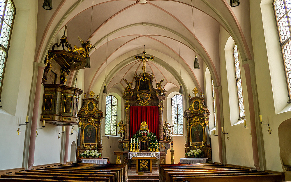 Heute dürfen wir eine Kirche von innen sehen, die von außen fast jeder kennt: ![]() DAS Postkartenmotiv schlechthin ... Ramsau bei Berchtesgaden. Die Kirche St. Sebastian ist schon unendlich oft fotografiert und gemalt worden. 1960 malte US-Präsident Eisenhower nach einem Farbfoto eigenhändig diese Kirche. Sein Werk wurde als Weihnachtspräsent für den Stab des Weißen Hauses vervielfältigt und in der europäischen Ausgabe von Stars and Stripes, dem Tagblatt der US-Streitkräfte veröffentlicht. 1512 wurde die Kirche im spätgotischen Stil erbaut. Um 1700 wurde gab es einen neuen Turm, der mit einer Zwiebelhaube barock überformt wurde. Und nun gehen wir mal rein: ![]() Willkommen in der Sonntagskirche von Seelenfarben :)). Deine Gedanken zur Kirche und zum Kircheninnenraum ? |
