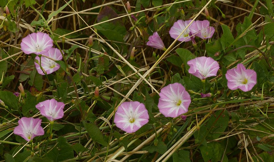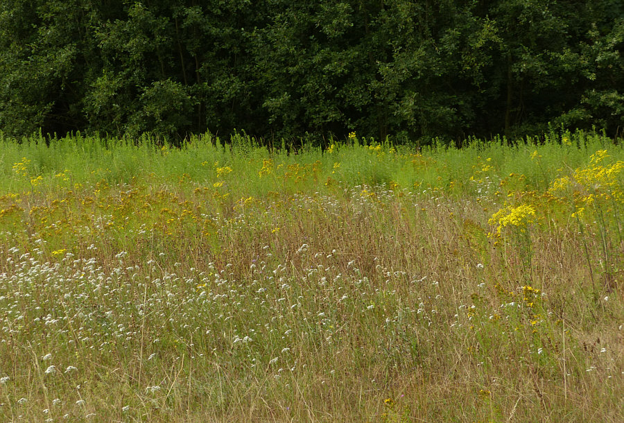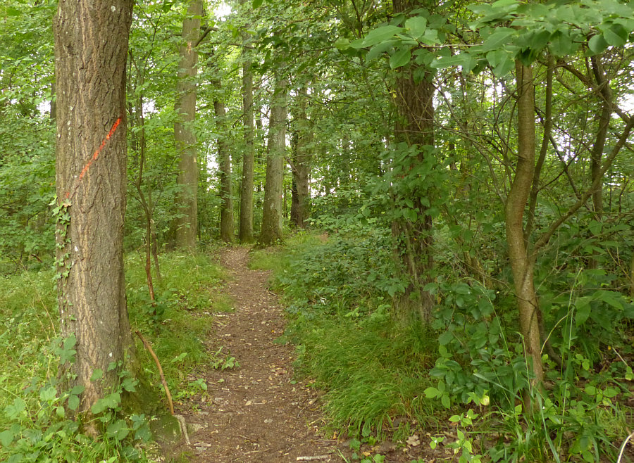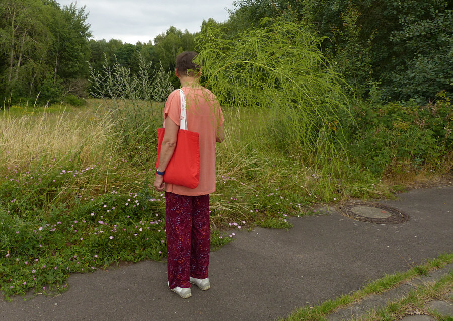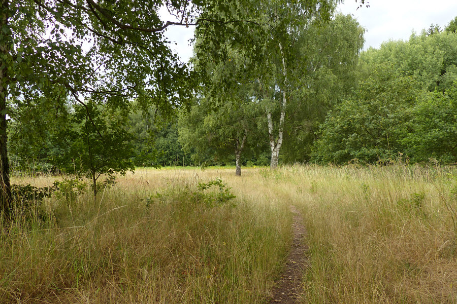 Kleiner Spaziergang Durch das Naturschutzgebiet "Closenbruch", Teil 2 ![]() Ja, was macht denn Beate da ? Sie säubert das Fotomotiv von einigen dürren Halmen, die drauf gelegen haben, damit ich den Feld-Thymian besser fotografieren kann: ![]() Natürlich hat Beate auch am Thymian gerieben und dann an den Händen gerochen ... riecht wunderbar. Diese kleine Pflanze hat übrigens Wurzeln, die bis in ein Meter Tiefe reichen. Wir gehen weiter durch die Graslandschaft ... ![]() ... an einzelnen Birken vorbei ... und dann sehen wir ihn, den musikalischen Baum: ![]() Die Stimmgabel-Birke Die ganze Zeit sind wir durch Gras gegangen ... ![]() ... und nun verschwindet der Weg im Wald: ![]() Ein schmaler Pfad durch einen ... ![]() ... ziemlich urwüchsigen Wald: ![]() Da liegen dann Stämme auch mal länger ... ![]() ... und deren Holz wird ganz leicht und trocken ... fühlt sich wie Kork an. Und dann kam der Irrweg. Wir sind nämlich aus dem Wald heraus gelaufen und einem kleinen Pfad gefolgt. Und dann am Hinterausgang eines Gartens gelandet. Da hat jemand einen Pfad von seinem Garten in den Wald gelaufen. Am Rand des Irrwegs ... ![]() ... stand diese schöne Spargelpflanze. Die viele Samenkapseln trägt: ![]() Eine andere Spargelpflanze, man kann auch Asparagus dazu sagen, lag leider daneben. Die haben wir dann mitgenommen. Weil das Asparaguskraut wunderschön zwischen Blumen in einem Strauß aussieht. Leider ist es dann schneller gelb geworden als es den Weg in eine Vase fand. Wir also den Irrweg wieder zurück ... wieder zurück in den Wald ... ![]() Hier ... ![]() ... sind wir schon fast am Auto. Und bei den letzten Blümchen unseres Spaziergangs ... den rosaroten Winden: ![]() ![]() So ... jetzt sind wir wieder am Auto ... dankeschön fürs Mitlaufen :)). |