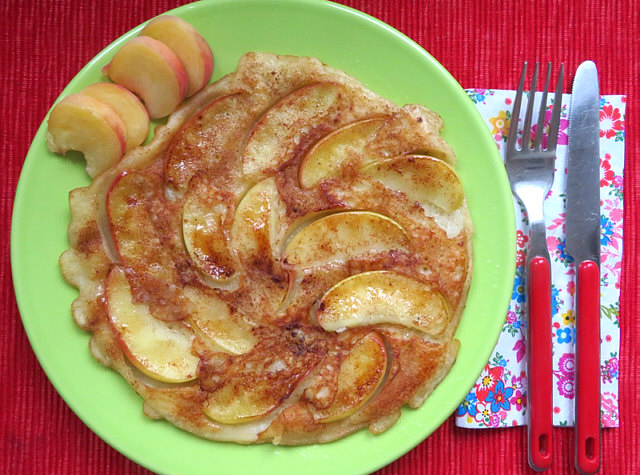Bei uns gab es heute was Süßes, Eierkuchen mit Apfelspalten im Teig.