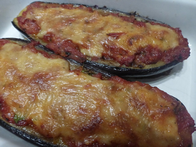 "Papoutsakia" (gefüllte Auberginen), zubereitet nach dem Rezept von