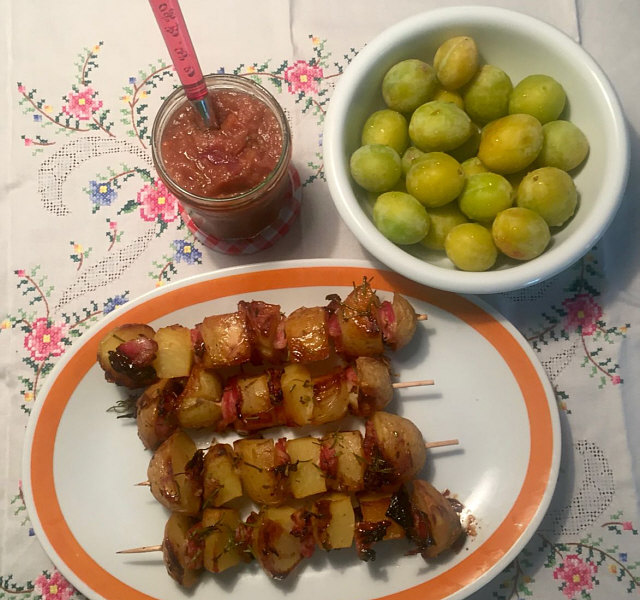 Apfel-Zwiebel-Chutney und Mirabellen zum Nachtisch.