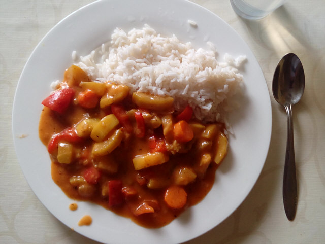 1 Tomate für den Geschmack, Erbsen (allerdings tiefgefroren) und einen