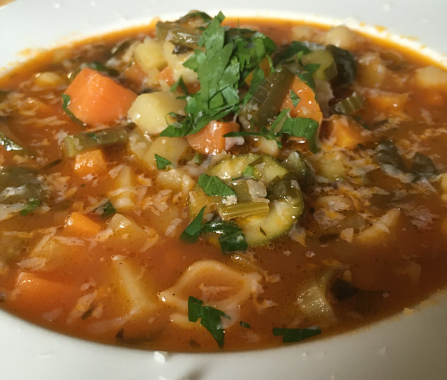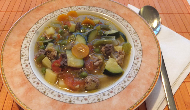 Minestrone mit Zucchini, Tomaten und Bohnen (Blaue Hilde/alte Sorte) aus