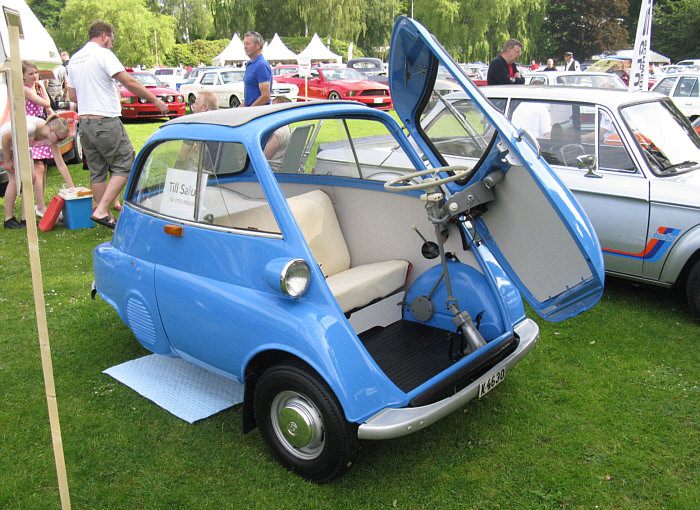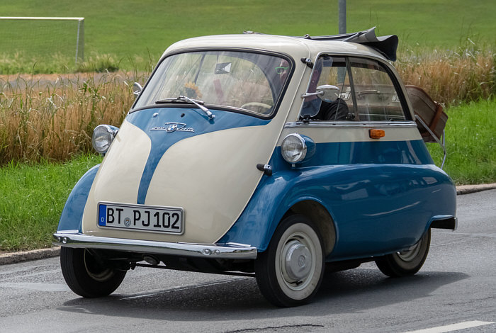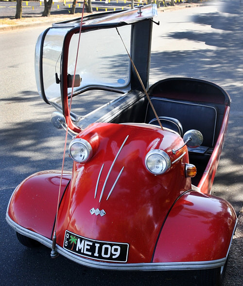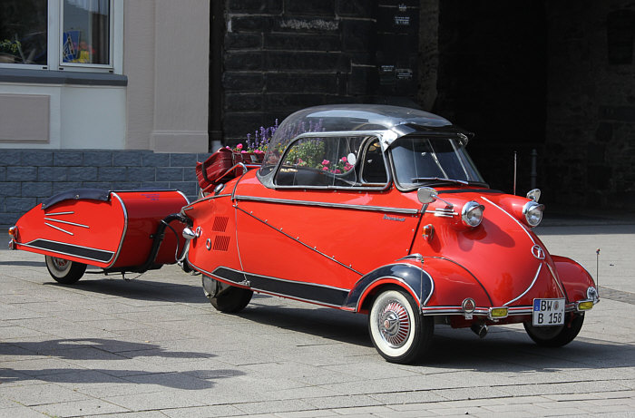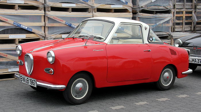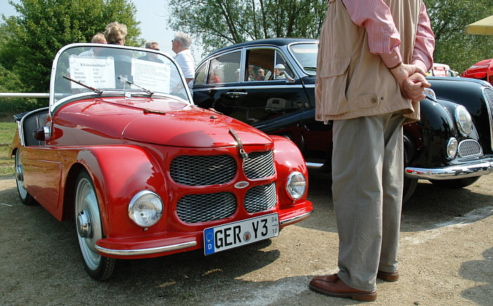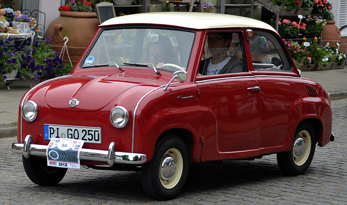 Gestern gabs im Abreißkalender einzelne Kommentare, die das "Goggomobil" gar nicht kennen ... also zeige ich das heute noch mal. Denn gestern war ja das Coupe zu sehen ... ![]() ... viel mehr wurde aber die Limousine verkauft: ![]() Wobei "Limousine" zu hoch gegriffen ist ... das hier ist ein Kleinstauto. Wenn wir das mal mit dem aktuellen Fiat Panda vergleichen: PS: Fiat 69 - Goggo 13,6 Länge: Fiat 365 - Goggo 290 Breite: Fiat 164 - Goggo 128 Höhe: Fiat 155 - Goggo 131 Gewicht: Fiat 940 - Goggo 415 Höchstgeschwindigkeit: Fiat 164 - Goggo 80 Ich habe jeweils die unterste Motorisierung genommen. Beim Goggo sitzt der Motor hinten und vorne ist gar nix ... die Füße reichen bis zum Scheinwerfer. Es gibt noch weitere Kleinstwagen der 50er Jahre: ![]() BMW Isetta ... da kann man die gesamte Vorderfront öffnen, das ist die Tür zum Auto: ![]() Die Isetta ist übrigens 40 Zentimeter kürzer als der aktuelle Smart. Dagegen wirkte die erste Version des Trabants ... ![]() ... wie ein großes, erwachsenes Auto ... der ist ja auch ein Kleinwagen und kein Kleinstwagen. Einen solchen haben wir jetzt wieder ... ![]() ... den Messerschmidt Kabinenroller. Vorne zwei Räder, hinten eines, nur zwei Sitze und die hintereinander ... und kein Rückwärtsgang in der Grundausstattung. Um rückwärts zu fahren, wird der Zweitaktmotor in umgekehrter Richtung angelassen. Wenn der Zündschlüssel eingesteckt und gedreht wird, dreht der Motor rechtsherum und alle vier Gänge können zum Vorwärtsfahren genutzt werden. Bei Einstecken und gleichzeitigem Drücken sowie Drehen des Zündschlüssels läuft der Motor linksherum. Man kann somit in allen Gängen auch rückwärts fahren, theoretisch also rückwärts so schnell wie vorwärts. Es gab auch keine normale Tür ... ![]() ... es klappte nur das Oberteil zur Seite. Aber es gab ja eine Bedienungsanleitung fürs Einsteigen: "Einsteigen: Das Ein- und Aussteigen ist beim Kabinenroller etwas anders als Sie es bei anderen Fahrzeugen gewöhnt sind. Vor dem Öffnen der Haube überzeugen Sie sich, ob rechts des Fahrzeugs auch genügend Platz ist. Haube langsam anheben und nach rechts überkippen, bis Lederriemen straff gespannt ist. Nun, wie folgt Platz nehmen: Sitz hochschwenken Lenkung leicht nach rechts einschlagen Rechten Fuß in Fahrzeugmitte setzen Platz nehmen Linken Fuß hineinsetzen Beide Füße nach vorn setzen Jetzt erst mit beiden Händen an den schrägen seitlichen Rahmenrohren abstützen und Sitz nach vorne schwenken lassen." Darfs ein bißchen kleiner sein ... das ... ![]() ... ist das kleinste Serienauto der Welt. Der Peel P50, 1961-1963 wurden nur 120 Autos davon gebaut. Nur gut halb so lang wie eine Isetta und nur 59 kg schwer und natürlich ein Einsitzer. Auch hier ohne Rückwärtsgang ... aber im Falle des Falles hebt man das Auto einfach hintenrum. Gönnen wir den Augen doch noch mal einen Blick auf ... ![]() ... etwas "Erwachsenes" ... der Prinz 4 von Anfang der 60er Jahre. Er ist der größte der hier gezeigten Autos, aber immer noch 10 cm kleiner als der aktuelle VW Up. Was hamwa noch ? Einen, der so heißt wie er ist ... ![]() ... der Kleinschnittger, ein offener Zweisitzer mit Alu-Karosserie. Was zeige ich zum Schluß ? Nochmal ein dreirädriges Auto ... hinten nur ein Rad hatten wir ja heute schon ... ![]() ... aber die Spezialität der englischen Automarke Reliant ist, dass es vorne nur ein Rad gibt. Warum nur drei Räder ? Weil es dann in England mit dem Motorradführerschein gefahren werden darf. Heute gabs hier eine kleine Reise zu den kleinen Autos der 50er und 60er Jahre. Den VW Käfer durfte ich dabei nicht zeigen, denn der ist viel größer als alles, was wir hier gesehen haben. |