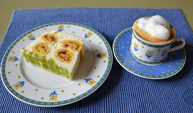Creme: Mascarpone, Joghurt, Sahne, etwas Zucker, etwas Holundersirup,