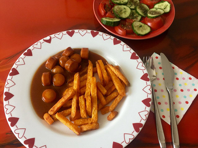 Currywurst und tiefgefrorene Süßkartoffelpommes hatte ich am Wochenende