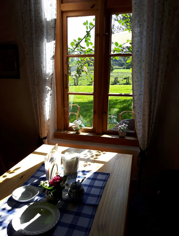 Hey Du ... ja Du .... heute ist ein ganz besonderer Tag. Denn Du bist ... auf ganz wundersame Weise hoch im Norden von Deutschland gelandet ... ![]() ... im Park von Gut Hanerau. Es ist Sonntag ... gehts jetzt zur Kirche ? Ausnahmsweise mal nicht ... denn ich habe eine Überraschung für Dich. Mal etwas anderere, aber sehr schöne Augenblicke erleben. Denn hier im Gut gibt es eine "alte Scheune" ... und dort gibt es ein ... ![]() ... kleines Café. Du gehst hinein ... ![]() ... und bekommst Deinen Lieblingsplatz am Fenster: ![]() Hier gibt es selbstgebackene Kuchen ... Försters Kirschtorte, Burggrafenwellen, Sommerfruchttorte, Tante Friedas Pflaumenkuchen ... und eine gute Seele des Hauses, die jetzt zu Dir kommt. Es ist eine Dame, die schon über 80 Jahre ist und hier all die leckeren Kuchen bäckt. Gleich bringt sie Dir ... ![]() ... ein Stück leckere Brombeertorte. Ohne Kernchen. Und einen ... Eierkaffee ... genau den "Ditmarscher Eierkaffee": Zutaten für 8 Portionen: 900 ml Wasser, 1 frisches Ei, 1/4 TL Kardamom, gemahlen, 12 TL Kaffeepulver. Vom Wasser etwa 100 ml abnehmen und mit dem Ei ausgiebig verquirlen. Das restliche Wasser aufkochen und das verquirlte Ei, den Kardamom und das Kaffeepulver zugeben und 2 Min. sprudelnd kochen. Jetzt den Herd auf geringe Hitze stellen und ca. 10 Min. ziehen lassen. Dann ganz altmodisch durch einen Kaffeefilter geben und heiß servieren. Nach Bedarf mit Zucker süßen. Dieses tolle Getränk bringt die alte Dame auch. Nachdem Du Deinen Kaffee getrunken hast ... stellst Du fest, dass auch dieser Kaffee Dich ein gewisses Örtchen aufsuchen lässt. Dort gibt es zum Abtrocknen der Hände nach dem Waschen keine schnöden Papiertücher ... sondern ... ![]() ... sondern kleine, frisch gewaschene Baumwolltücher. Du hast gerade das ganz warme Gefühl, hier eine kleine Heimat gefunden zu haben ... ![]() ... und als du wieder an Deinem Tisch sitzt, schaust Du lange aus dem Fenster. Mit einem ganz besonderen Lächeln und ganz viel Licht in Deiner Seele. |