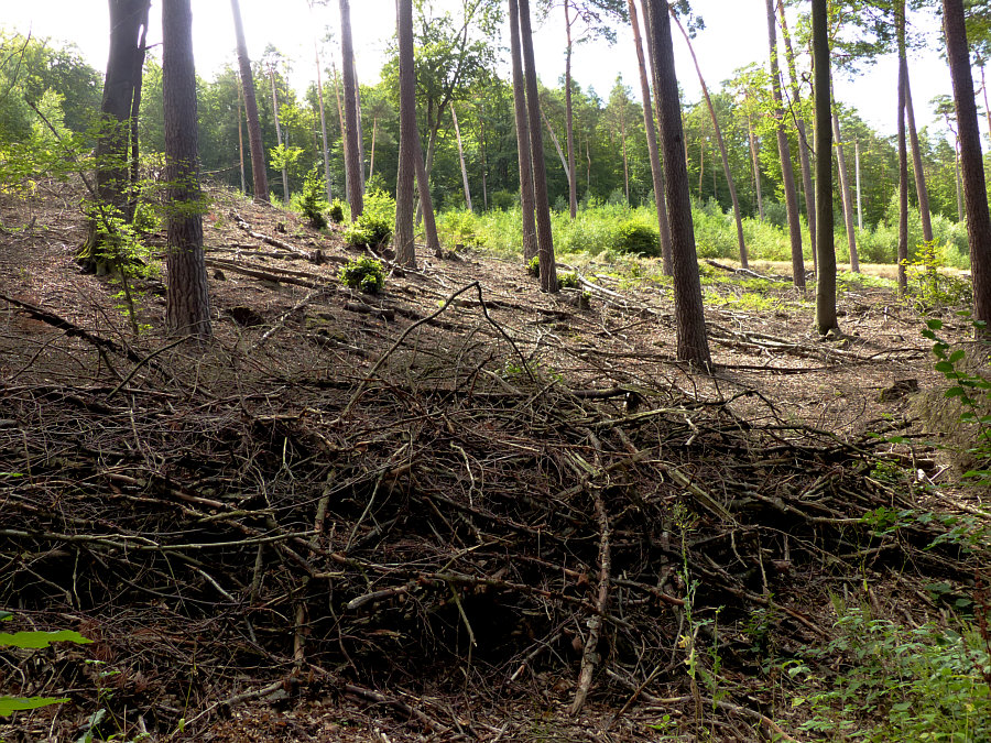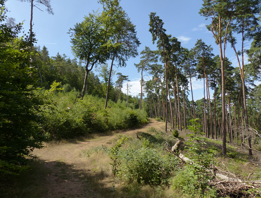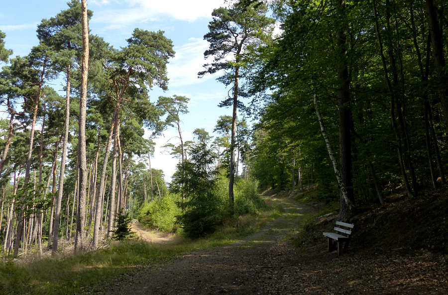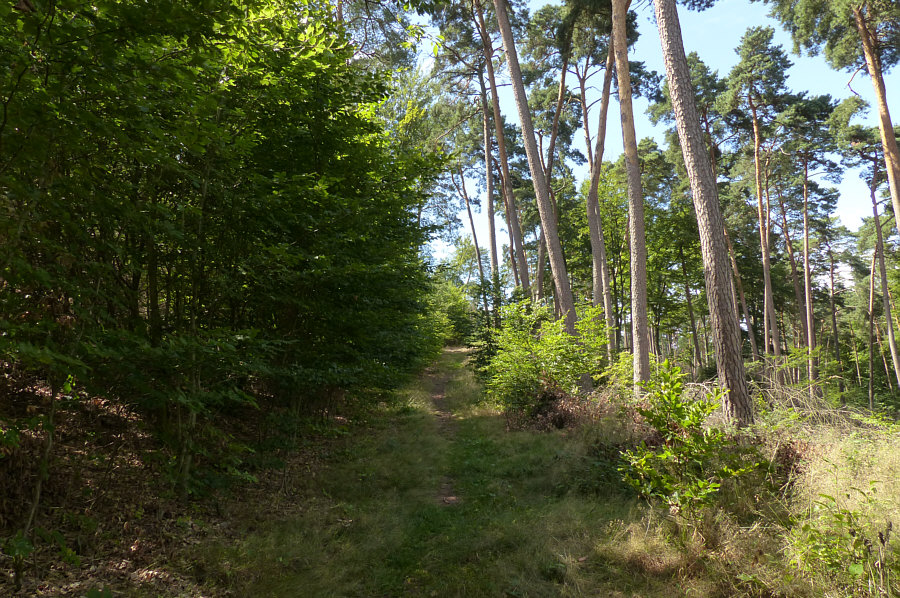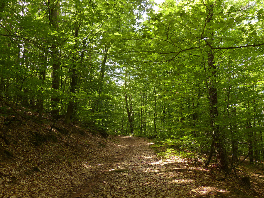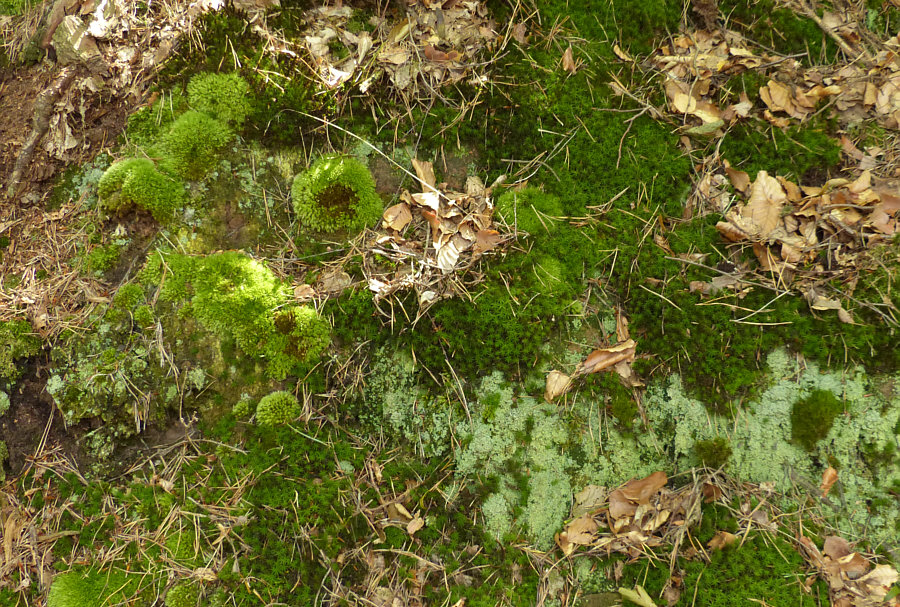 Wege ... ... die Beate und ich in den letzten Wochen gegangen sind ... ... und die ich heute zeigen muss, denn bald passen eher grüne Wege nicht mehr in die Jahreszeit. Auch wenn es wirklich schon etwas länger her ist, so will ich Euch den folgenden Weg auf jeden Fall zeigen. Weil er etwas anders war als die Wege, die wir sonst so gehen. Nicht so lauschig, mit mehr Sicht ... und mit Kiefern. ![]() Natürlich nicht nur Kiefern ... unsere Wälder sind ja Mischwälder. Hier zwei Ahörner ... ![]() ... mit Kind ... und es folgt die Erinnerung an Zeiten, die noch grün waren: ![]() Vielleicht tut so viel Grün gut, wenns draußen grau und naß ist. Aber auch dann, wenn noch alles grün ist, gibt es Stellen, die ganz anders sind: ![]() Eine Minute nach dem Grün fotografiert ... so schnell kann sich das Bild ändern. Ein paar Meter gehen ... und dann zurück schauen ... ![]() ... da sehen wir dann rechts die dürren Äste hinterm Grün liegen. Der Weg steigt nun an bzw. wir biegen auf einen ansteigenden Weg ab ... ![]() ... rechts wieder die Kiefern ... bei diesen Bäumen lohnt sich ein Blick nach oben: ![]() Der Blick wird weiter ... ![]() ... und wir schauen mal nach oben ... ![]() ... und nach rechts zum Waldrand: ![]() Wir laufen weiter ... blicken zurück ... ![]() ... da vorne steht etwas, was zumindest in unseren Wäldern selten geworden ist: eine Bank. Eine Bank an sich ist schon selten ... eine die noch einigermaßen in Ordnung ist, noch seltener. Der Wald wird nun grüner und dichter ... ![]() ... und links auf dem Bild sehen wir ein Sammelsurium ... ![]() ... von Altholz, Blättern, Nadeln ... ![]() ... Moosen und Flechten. Natürlich bleibe ich hier stehen und fotografiere: ![]() ![]() Hach ... was war das damals für ein schöner sonniger Tag ... ![]() ... im Moment ist ja mit Waldspaziergang nix, wegen des vielen Regens. Auch wenn der aufhört, dauert es noch ein paar Tage, bis die Wege abgetrocknet sind. Manchmal wächst auf dem Weg, mitten im alten Laub, Gras ... ![]() ... das dann, wenn man die Kamera tiefer hält, anders und schöner aussieht: ![]() Dieses Bild hat auch seinen Reiz als Schwarz-weiß-Bild: ![]() Der Abschluss ist natürlich wieder grün ... ![]() ... mit dem Gefühl, unter einem grünen Dach zu stehen. |