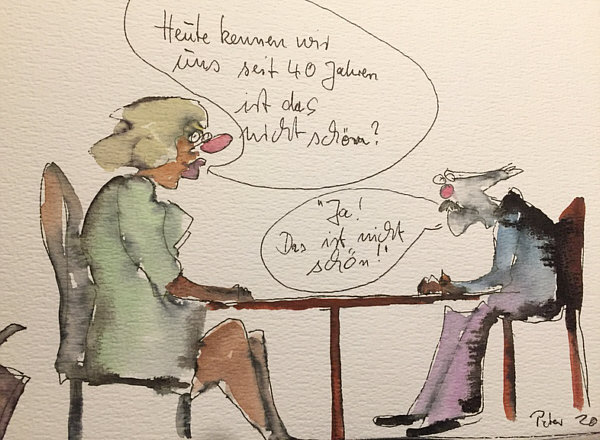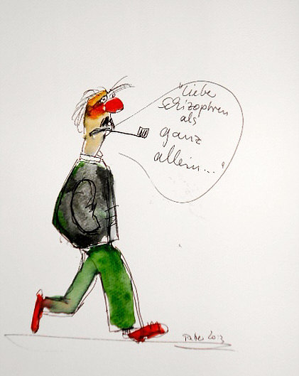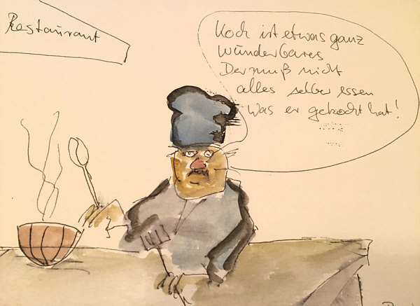 Ich dachte mir, ich mache heute ein Kalenderblatt, zu dem meine Leser sagen: Besser kann der Montag nicht anfangen :)) Denn ich habe heute nochmal solch humorvolle Bilder, wie sie an der Scheibe des Eiscafes zu finden waren. Heute gibts auch den Namen des Künstlers und einen Link zu seiner Seite. ![]() ![]() ![]() ![]() ![]() ![]() ![]() ![]() ![]() ![]() ![]() ![]() ![]() ![]() ![]() ![]() ![]() Gemalt hat die ganzen Bilder: Peter Hilzensauer Seine Homepage: Karikaturenpeter |
