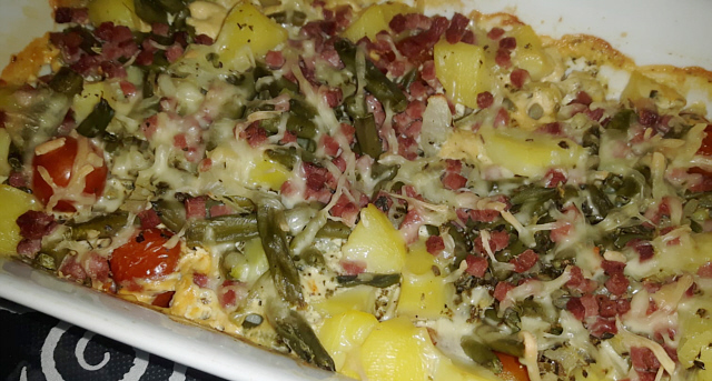 Das Gemüse habe ich vor dem Backen in einer Schüssel mit Öl und und