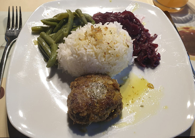 Frikadellen, Reis, Bohnen, Rotkohl