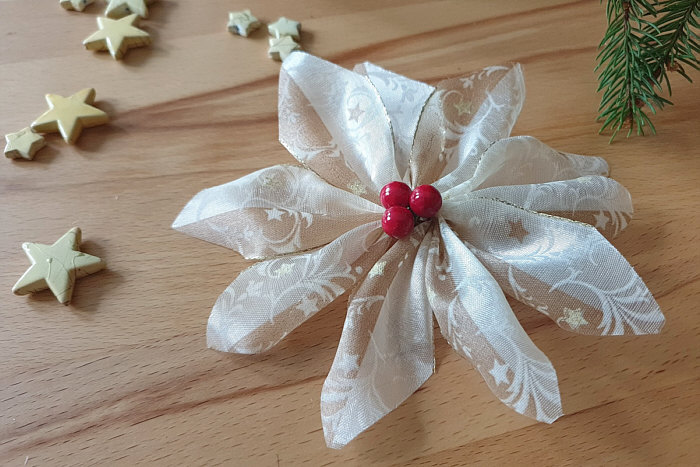 Und aus diesem Schleifenband sind zwei Varianten von Blüten entstanden:
