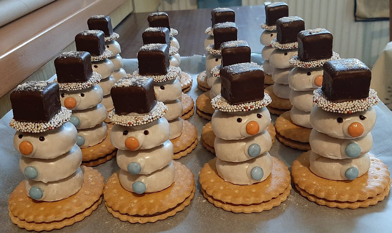 z.B. als Hut für die Schneemänner evtl. kleine Mini-Schokoküsse nehmen.