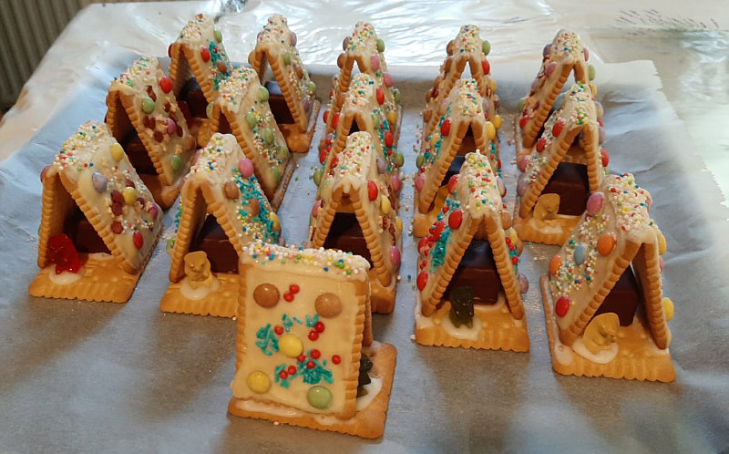 zum Verkauf solche Schneemänner und kleine Hexenhäuser gemacht.