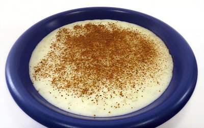 aus Wasser, Milch, Zimt, rundem Reis und etwas Salz gamcht.