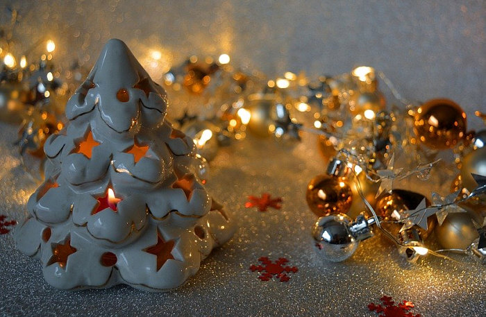 Ein Weihnachtsbaum und ein leckeres Essen am Heiligen