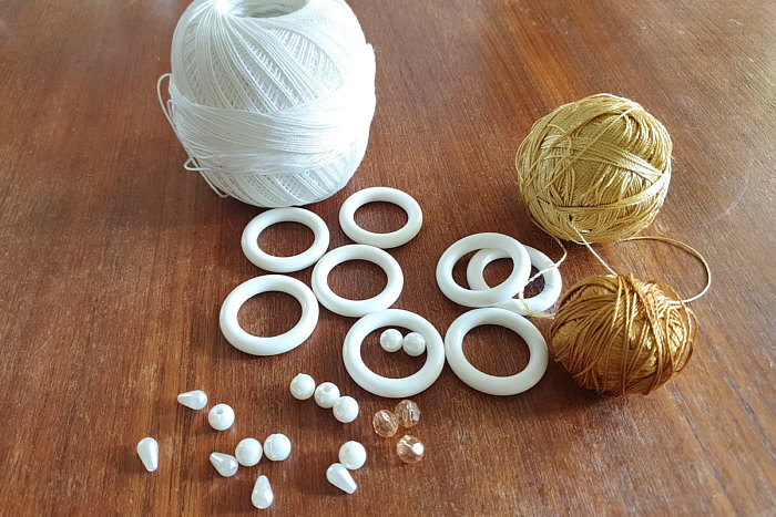 ... sind Gardinenringe ... dann liegen da noch Häkelgarn und Perlen.