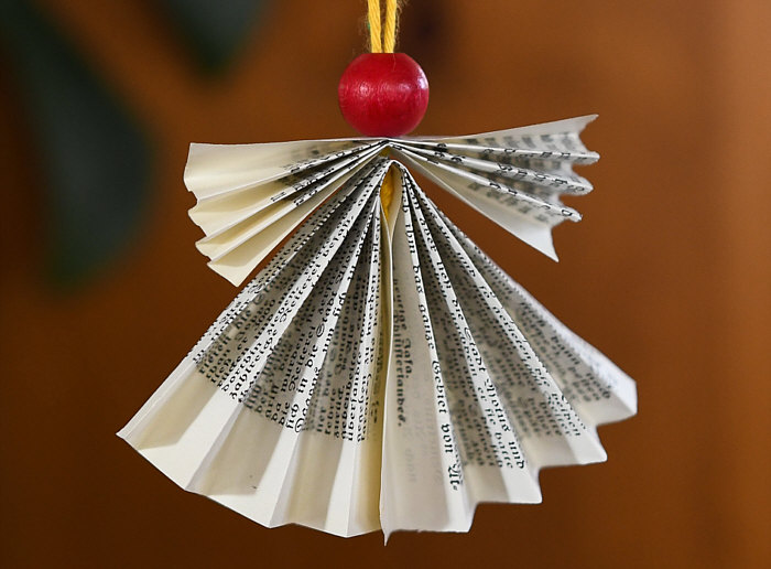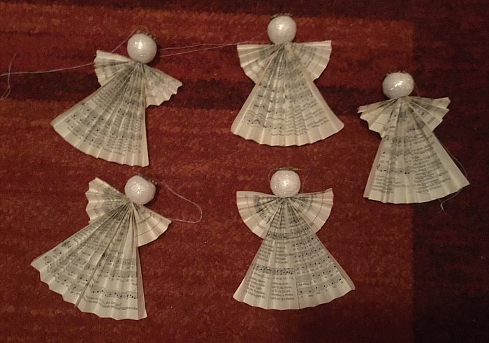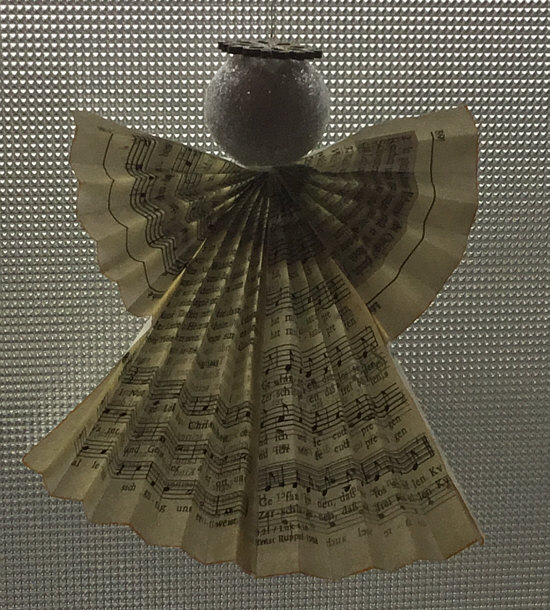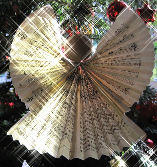 Diese Engel sind auch aus den Seiten eines alten Gesangbuchs gefaltet worden.
