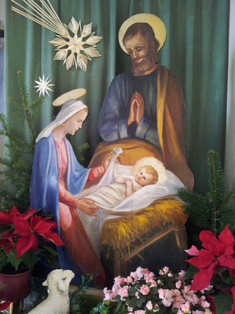 [Bild von der Krippe in Marias Kapelle. Gemalt auf