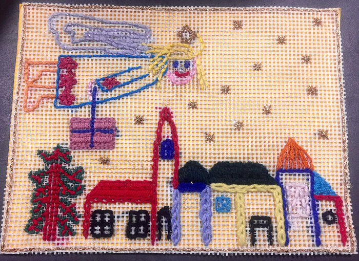 sondern auch ein ganzes Bild mit Engel gestickt.