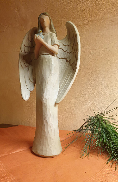 Birgit hat es mit Alufolie repariert ... nun ist der Engel ganz besonders.