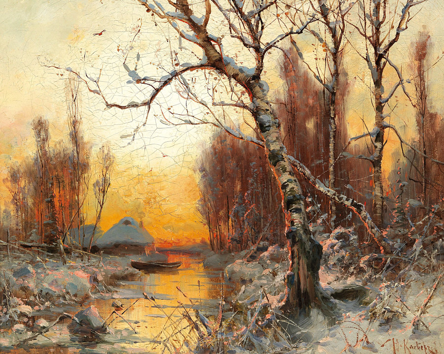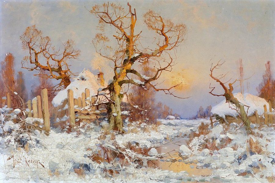 Julius von Klever wurde 1850 in Dorpat in Estland geboren und starb am Heiligen Abend 1924 in Leningrad. Ab 1880 stellt er regelmäßig auf den großen Kunstausstellungen in Berlin, München und Wien aus. Viele seiner Werke sind Schneelandschaften mit besonderen Lichtstimmungen. Schöne Sonnenuntergänge, Lichtstrahlen, Spiegelungen, Häuser, tolle Bäume. Einige davon zeige ich heute: ![]() ![]() ![]() ![]() ![]() ![]() ![]() ![]() ![]() ![]() Zum Weiterlesen: Julius von Klever |