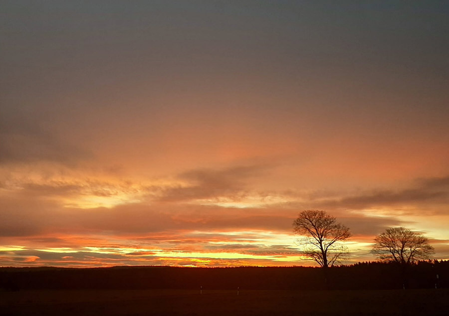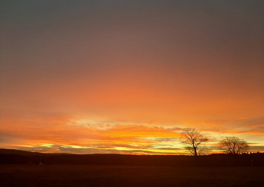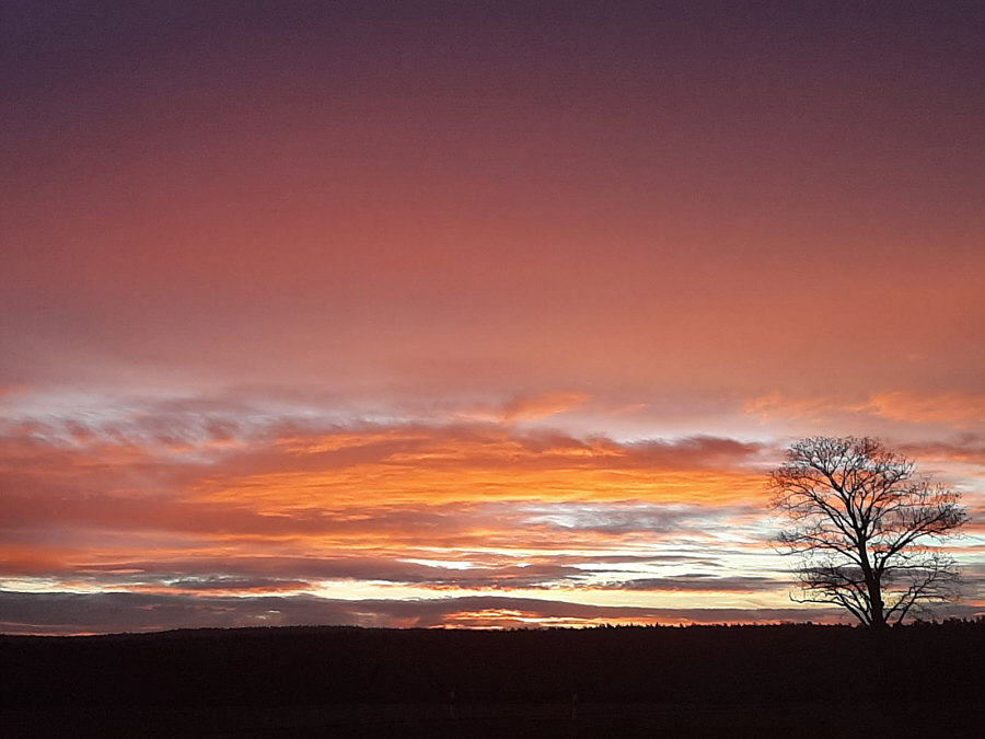 Ich habe in den letzten Tagen einige schöne Sonnenaufgänge gesehen. Im Moment startet der Tag oft mit ganz tollen Farben. Ich würde das ja auch fotografieren ... aber ich müsste mir erst einen Platz suchen, von dem aus man am frühen Morgen die Sonne fotografieren kann. Petra H. geht einfach an ihr Hoftor und fotografiert. Die Bilder sind ganz aktuell ... wir gehen heute mit Petra und stellen uns neben sie, um den Sonnenaufgang von gestern nochmal zu sehen: ![]() 7.40 Uhr ![]() 7.50 Uhr ![]() 7.57 Uhr ![]() 7.58 Uhr |