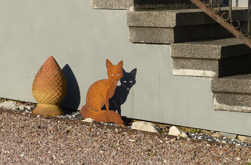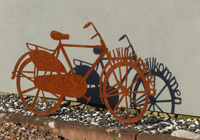 Hey ... ![]() ... wir sind ja schon wieder in Rubenheim an der Kirche. Das ist auch gut so ... denn ich hatte ja am Montag ... ![]() ... geschrieben, dass es nicht nur den Kirchenbesuch, sondern auch einen Spaziergang gab ... der war mit 2 Stunden richtig lang ... und darum heißt es heute: Kommt doch mal mit ... ... und begleitet uns auf dem Spaziergang. Wie immer zeige ich die Bilder in der zeitlichen Reihenfolge, wie wir sie gesehen haben. So fing es an ... ![]() ... mit einem dieser farbigen Vordächer ... in überraschend gutem Zustand. Und gleich beim Nachbarhaus auch ... ![]() ... Beate und ich lieben diese bunten Glasdächer über den Haustüren. Nicht so bunt, aber auf seine ganz eigene Art sehr schön ... ![]() ... ist dieser Fuchs ... ![]() ... und die Blechfigur muss neidlos anerkennen, dass der Schatten noch schöner ist als das Blech. Gleich daneben steht ein Fahrrad ... ![]() ... ein ganz ganz besonders Fahrrad, denn es steht "willkommen" drauf und nicht "welcome". Diese Bild hab ich fotografiert, bevor wir in die Kirche gingen. Die Bilder vom Kircheninnern hatte ich ja am Montag schon gezeigt, jetzt gehts nach dem Verlassen der Kirche weiter. Und zwar mit einem Blümchen ... ![]() ... aber man muss mit der Kamera nicht immer gezielt Blümchen ansteuern, denn auch, wenn nix blüht, sind einfach nur Pflanzenstrukturen ein schönes Motiv: ![]() Mauerpfeffer ist auch ohne Blüten sehr schön. Im nächsten Vorgarten sehen wir auch keine Blüten ... ![]() ... aber ganz viele Knospen und ganz viel Hoffnung für eine traumhafte Magnolienblüte. Und nun habe ich eine gute Nachricht für alle Allergiker ... ![]() ... hier im Kalenderblatt machen dir diese Kätzchen gar nichts ... hier kannst du ganz nah an den Monitor rangehen und es passiert ... nix ... du musst nicht niesen. Und wenn doch, dann ist dein Monitor staubig und du niest deswegen ;)). Der nächste Vorgarten hat mich sehr erfreut ... ![]() ... nicht nur, weil dort Schneeglöckchen geblüht haben ... das gibt es ja öfters. Sind ja treue Blümchen und sie kommen jedes Jahr. Aber diese Blume liebt Schattenplätze und so sind die Blüten oft fast den ganzen Tag geschlossen. Schneeglöckchen in der Sonne zu fotografieren, das ist ein kleines Glück am Wegesrand: ![]() ![]() ![]() Beim nächsten Bild ... ![]() ... sieht man die Straße, durch die wir gelaufen sind. Und durch die wir auch morgen laufen werden ... ... denn es heißt nun: wird fortgesetzt :)). |