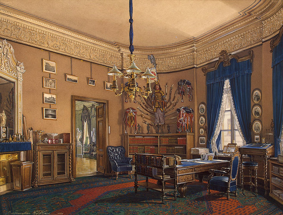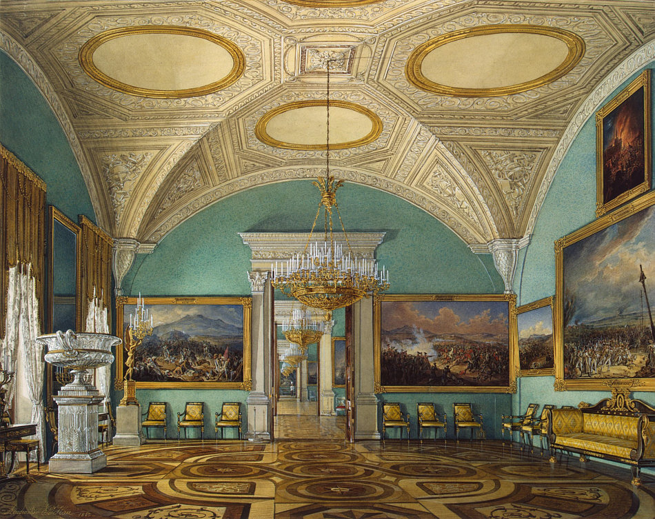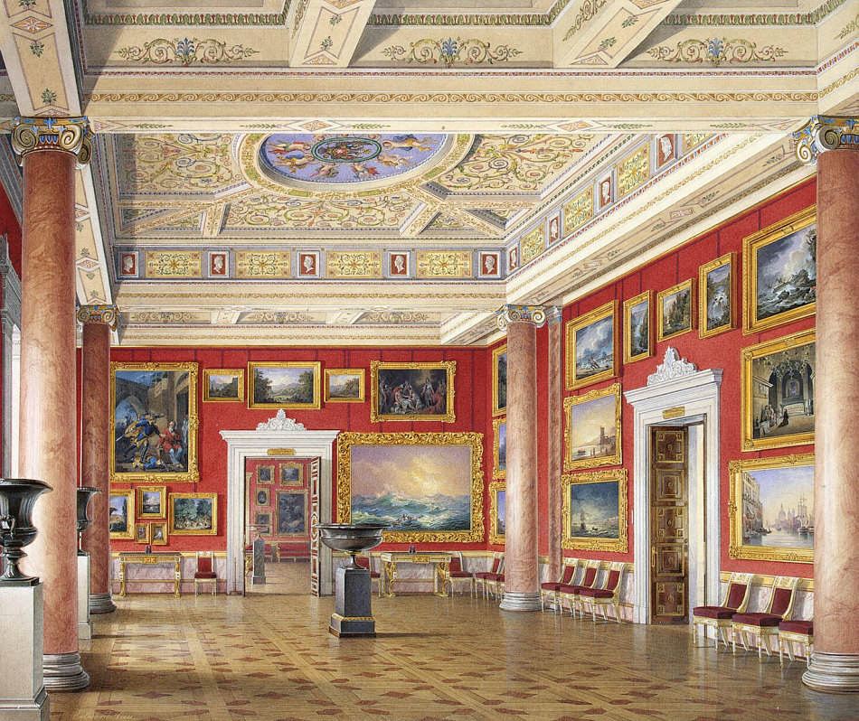 Wann gibt es im Kalenderblatt Kunst ? Immer dann, wenn ich einen Maler oder eine Malerin finde und den/die gerne in der Kunst des Tages vorstellen würde, mich aber nicht für ein Bild entscheiden kann, sondern viel mehr zeigen will. So ging mir das bei Eduard Hau Er wurde 1807 in Estland geboren, wuchs in Talinn auf und studierte drei Jahre lang an der Kunstakademie in Dresden. Er wurde vor allem für seine Porträts von Professoren der Universität Tartu bekannt. Sie erschienen 1837 bis 1839 als 30-seitige Serie. Berühmt sind auch ... und die will ich Euch zeigen ... seine detailgenauen Werke der Interieur- und Architekturmalerei. Heute würde der Herr wahrscheinlich zur Kamera greifen, damals musste man malen, um etwas genau zeigen zu können. Die Bilder sind englisch betitelt ... ich schreibe den Namen dennoch dazu, dann weiß man doch mehr als wenn ich nix dazu schreibe. Mariinsky Palace: 1 ![]() New Hermitage: 2 ![]() 3 ![]() 4 ![]() 5 ![]() Small Hermitage: 6 ![]() 7 ![]() Winter Palace: 8 ![]() 9 ![]() 10 ![]() 11 ![]() 12 ![]() |