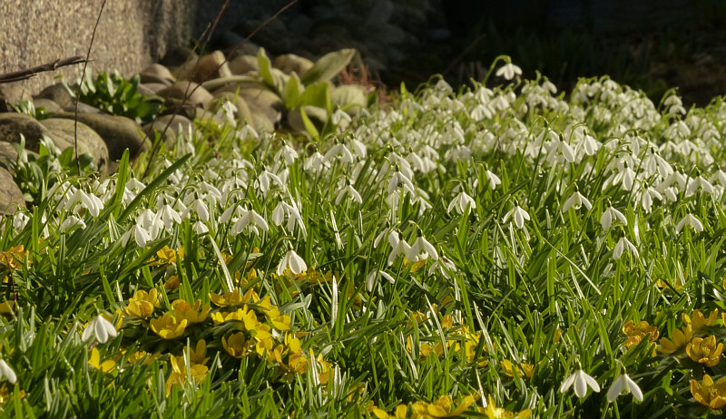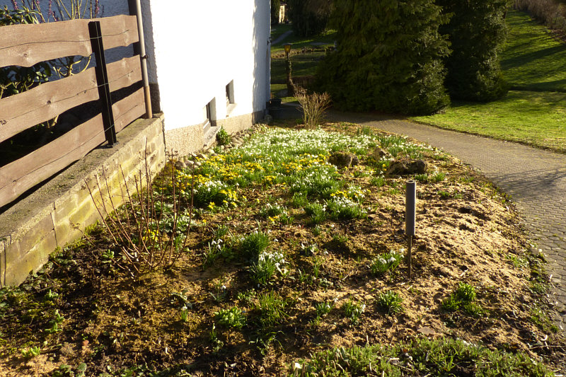 Kommt doch mal mit ... ... beim Spaziergang in Rubenheim. Teil 4 Tja, ich hatte nicht hingeschrieben "wird fortgesetzt", ich war ja mit Truthanflüstern beschäftigt ... aber ich hatte auch nicht hingeschrieben "danke fürs Mitlaufen" ... ... das kommt ja immer zum Schluss. Und so laufen wir heute weiter ... ![]() ... wir winken den guten Puten zum Abschied ... ... und gehen unseren Weg ... an alten Obstbäumen vorbei: ![]() Hier auf der Wiese blüht noch nix ... aber der nächste blühende Vorgarten ... ![]() ... ist ja nicht allzuweit entfernt. ![]() ![]() Die Auszeichnung "Vorgarten mit den meisten Blüten" bekommt aber dieser Garten ... ![]() ... der über und über mit blühender Heide bedeckt ist. Mit "über und über" geht es auch weiter ... ![]() ... denn mehr Efeu an einer Hauswand geht kaum. Nochmal "über" ... aber diesmal "über uns" ... ![]() ... da schwebt majestätisch dieser Greifvogel. ![]() ![]() Näher und besser ranholen ging leider nicht, denn noch während des Fotografierens flog das Tier immer höher und höher und up up and away. Da ... ![]() ... gehn wir nicht rein ... denn holistisch heißt ganzheitlich und bei einem solch schönen Spaziergang sind wir ja eh ganzheitlich glücklich. Die Frühlingssonne lacht ... ![]() ... und wir gehen zuversichtlich und gut gelaunt unseres Weges. Wir sehen nochmal Schneeglöckchen ... ![]() ... fragen eine alte Treppe, wer schon alles über sie gegangen ist ... ![]() ... und erschrecken vor einer Schlange ... ![]() ... bis wir feststellen, dass sie ungiftig ist. Die Satellitenschüssel lacht ... ![]() ... der Weg wird schlechter ... ![]() ... aber die Blumen schöner: ![]() ![]() ![]() Sogar die Lupine treibt schon Blätter. In zwei verschiedenen Gärten haben wir gesehen, das dort Grabsteine stehen ... statt sie zu entsorgen, wurden sie in den Garten gestellt: ![]() Wir sind in einem Ort, in dem die Kühe Wasser geben ... ![]() ... ganz laktosefrei, versteht sich ;)). Hier ... ![]() ... steht natürlich die Frage im Raum, ob da eine Marienstatue drin steht ? Die Antwort ist ein "ja, aber ..." ... ![]() ... ein "ja, aber nicht nur ...". Wir fanden noch zwei Jesus-Figuren am Kreuz, eine Madonna ... ... es kann sein, dass das ein tiefgläubiger Ort ist. Oder ein tiefabergläubischer Ort, denn hier gibt es unter anderem auch dieses Museum: ![]() Einer der wichtigsten Aberglaube ... ![]() ... ist dieser: Begegnet dem Wanderer Pferdemist der Spaziergang dann zu Ende ist. Danke fürs Mitlaufen :)) |