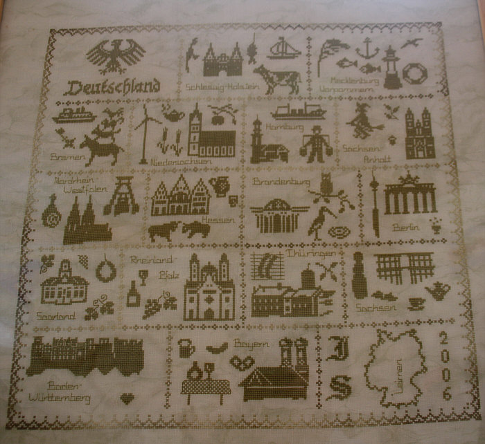![]() Da schauen wir doch mal wieder, was es für schöne Bilder im Bilderbuch zu sehen gibt :)). Es sind wie immer Bilder, die ich selbst noch nicht kenne, denn ich habe sie mir noch nicht angeschaut, will selbst auch ein bisschen überrascht werden. Alle Bilder wurden von Seelenfärblern fotografiert und alle Bilder sind aktuell. Petra H. ![]() Petra sagt: "Wenn wir Essen übrig haben am Wochenende, schaffen wir das immer zu einem älteren Mann hier im Ort. Der hat am Waldrand ein kleines Häuschen. Heute hatte ich Nudeln übrig und als wir die ihm die brachten, kamen alle Schafe auf uns zu. Das sind übrigens Kamerunschafe. Juttinchen ![]() Der Vorgarten wird immer grüner und bunter ... die Narzissen blühen bald. Christine B. ![]() Noch keine Spur von Frühling ist in Badgastein zu sehen ... hier ist noch Winterfreude und Schivergnügen pur. Wolkenfrosch ![]() Golden gestreifte Wolken am Morgen vor Sonnenaufgang. Die Streifen sind von der Sonne beleuchteter Regen. Allerdings kam der Regen nicht am Boden an, sondern verdunstete vorher. Der Fachausdruck für diese Streifen lautet Fallstreifen oder lateinisch Virgae. Es waren also Wolken der Art Stratocumulus virga. Nora ![]() Schneeglöckchen und Märzenbecher (Frühlingsknotenblume) blühen in Noras Garten. Satu ![]() Heute mal ein Bild von Satus gestückten Werke. Das ist eine freie Vorlage, die von einer Gruppe Frauen in verschiedenen Varianten gestickt wurde. Satu hat sich für einen melierten Stoff und die passende melierte Farbe im Stickgarn entschieden. Das Feld für Baden-Württemberg gefiel Satu nicht, da wurde sie dann einfach selbst kreativ. Ist schon 2006 gefertigt worden, hängt aber immer noch an der Wand. Monique ![]() Leise läuten auch hier die Glocken aus Schnee im Garten den Frühling ein. Margareta ![]() Und nach Frühling nun wieder Winter ... sogar mit Mond. Das ist der Blick in die Ferne von Margaretas Schule aus. Nachdem Margareta ihre Kinder "abgeliefert" hatte, "musste" sie kurz stehen bleiben, und dieses friedliche Bild zu genießen ... ein leiser, vielleicht letzter Gruß vom Winter. Und die Kinder haben sich gefreut, endlich mal wieder den Skianzug mit in die Schule nehmen zu können, um in der Pause dann im draußen im Schnee zu spielen. Einen Tag später war die weiße Pracht wieder fast ganz verschwunden. Inge-Lore ![]() Dieses Bild hat Inge-Lores Tochter aus ihrem Urlaub in Thailand mitgebracht. Pat ![]() Wo ist das Bild fotografiert ? Die Antwort mag man kaum glauben ... in Griechenland. Pat schreibt: "Wir haben diesen Winter sehr mildes und warmes Wetter und ganz wenig Niederschläge bis jetzt. Aber gestern hat es mal wieder fast den ganzen Tag geregnet. Als dann am späten Nachmittag die Sonne raus kam, lag Schnee auf dem höchsten Berg der Nachbarinsel. Das dürfte auf Kefalonia mit dem 1628 Meter hohen Berg Enos. Frühling und Schnee und Stickerei und Schafe und Urlaub und Wolken, Herz was willst du mehr als ein Bilderbuch :)). |