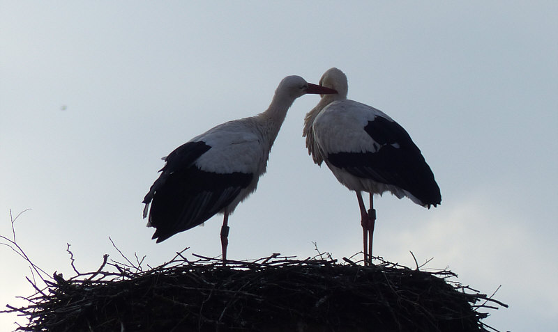 Ja, dieses Bild ... ![]() ... war schon im Tagebuch ... aber heute geht es nicht um mich und nicht um den Rahmen, sondern um ... ![]() ... das, was da noch im Bild ist. Nicht zufällig, das war schon so gewollt. Die Störche sind zurück ... ![]() ... und sie sind sich schon ganz vertraut ... ![]() ... und sie haben sich schon ganz viel zu erzählen: ![]() "ich bin ein modernes Kunstwerk" ![]() "ich auch, ich auch" ![]() "Hört mal alle her ... ich liiiiiieeeebe sie" ![]() "weißt du, was ein Täätatäät ist ?" ![]() "ich mag dich sooo" "ich dich auch" ![]() "hach, er mag mich" ![]() "für immer und ewig wir" ![]() "du bist mein herzallerliebstes Schnuckelchen" ![]() "ich bin sein Schnuckelchen, ich bin sein Schnuckelchen" Dies war ein kleines Gespräch, bei dem ich zuhören durfte. An einem anderen Platz habe ich dann Störche fliegen sehen: ![]() ![]() ![]() ![]() ![]() ![]() |
