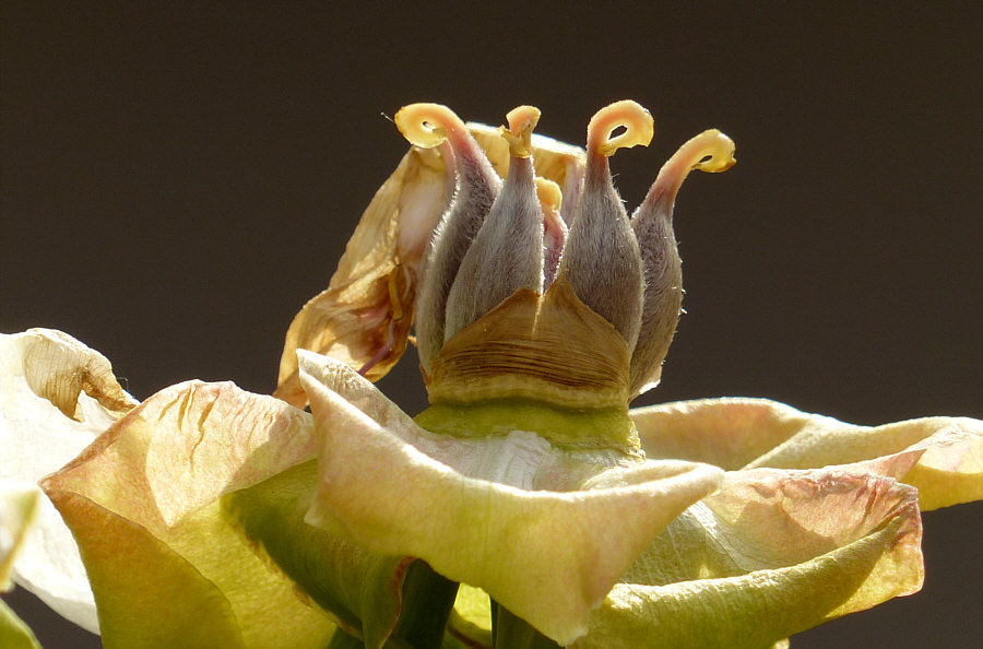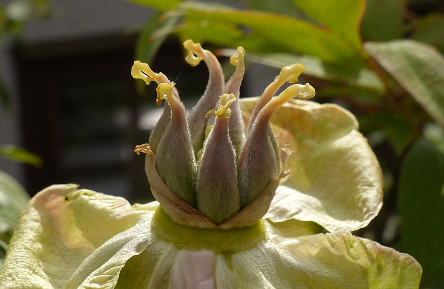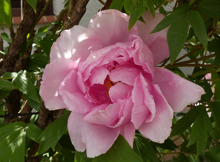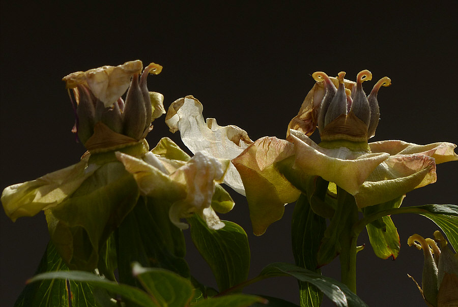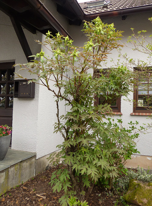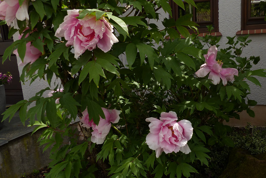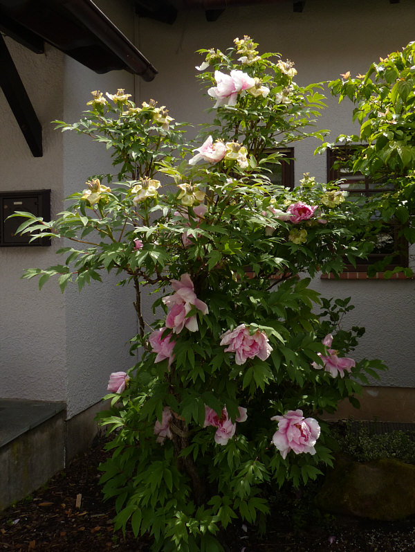 Rückblende ... es war der 13. April. Bei einem unserer Spaziergänge kam ich an diesem Strauch im Vorgarten vorbei: ![]() Ein uralter Strauch, wie man an dem Stamm sieht: ![]() Stehen blieb ich ... ![]() ... wegen der interessanten Knospen ... ![]() ... und wir fragten uns, welche Blume daraus wohl entstehen würde ? Beate meinte noch "Päonie ?" und dann gingen wir weiter. Letzten Sonntag waren wir wieder dort ... ![]() ... ja, Beate hatte recht gehabt ... es ist eine Päonie. Eine wunderschöne alte Strauchpäonie mit riesengroßen Blüten: ![]() ![]() ![]() Die Knospen waren interessant und eindrucksvoll ... die Blüten prächtige Schönheiten ... ... und die Samenstände ?? Die sind wie Kronen für eine der Königinnen der Natur: ![]() ![]() ![]() ![]() |