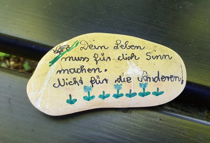 ![]() Da ist es ja wieder, das Bilderbuch ... und sogar vier Folgen hintereinander am Stück :)). Es sind wie immer Bilder, die ich selbst noch nicht kenne, denn ich habe sie mir noch nicht angeschaut, will selbst auch ein bisschen überrascht werden. Alle Bilder wurden von Seelenfärblern fotografiert und alle Bilder sind aktuell. Sabine P. ![]() Sabine hat beim Aufräumen ihres Bastelschrankes noch eine Packung Papierstreifen gefunden. Für Fröbelsterne ... und da zur Zeit sowieso alles anders ist als sonst, warum dann nicht im Mai Sterne für Weihnachten basteln !? Und die Lust zum Basteln war auch da. Also strahlten auf einmal mitten im Mai die Sterne so bunt. Ursel ![]() Da hat jemand das "hier ruht ..." mal ganz wörtlich genommen ;)). Christine L. ![]() Diesen Stein hat Christine L. bei einer Radtour gefunden. So wahre Worte ... Regina ![]() Regina hat da ein kurzes Video über Vögelchen aus Wolle gesehen. Das hat sie so fasziniert, dass sie diese Bastelei gleich einmal ausprobieren musste. Mittlerweile hat sie schon drei dieser Vögelchen gebastelt. Das hier ist das Rotkehlchen. Doris ![]() Diesen Halo hat Doris auf ihrer Wanderung von Eisenfelden nach Perach fotografiert. Wolf-Dieter ![]() Licht am Ende des Tunnels ... wenn wir weiterfahren, dann auf dem Chemnitztal-Radweg bei Wittgensdorf. Beim Fotografieren dieses Bildes hatte Wolf-Dieter schon 50 Rad-Kilometer hinter sich. Udo ![]() Anfang Mai ... 23 Uhr ... ein milder Frühlingsabend. Da kommt da plötzlich so ein Riesenvieh angebrummt und setzt sich auf einen LED-Lampion. Schnell rein Foto holen und zack, tatsächlich brauchbar erwischt, mit Blitz natürlich. Aber er ist schon eine Seltenheit geworden. Dieser hier war der zweite gesehene in diesem Jahr. Anne F. ![]() Am Rhein-Herne-Kanal an der Stadtgrenze Herne/Recklinghausen. Adelinde ![]() Endlich konnte Adelinde mal wieder zur Familie ihrer jüngsten Schwester fahren und dabei entstand dieses Foto des am Osterdienstag neu geborenen Fohlens. Adelindes 11jährige Nichte, die dieses Pferdchen einmal reiten darf, erklärte ihr, dass das Fohlen eine Besonderheit hat - ein blaues Auge und ein braunes Auge. Gitti ![]() Wo muss man denn hin, um dieses traumhafte Ensemble von Haus, Tieren und Natur zu sehen ? Ins Oderbruch nach Brandenburg ... der Ort heißt Zollbrücke. Hier kann man ewig auf dem Deich laufen. Auf der einen Seite sieht man die Oder und die Landschaften und auch Häuser in Polen. Auf der anderen Seite sind Wiesen und Wassergraben und auch Häuser in Zollbrücke. Neben dem Deich ist noch ein Radweg, der Oder-Neisse-Radweg. So ein Bild macht vieles wieder gut, was in dieser Zeit nicht ganz so einfach ist. Traumhaft wieder ... und so inspirierend unterschiedlich ... geht ja schon gut los :)). |