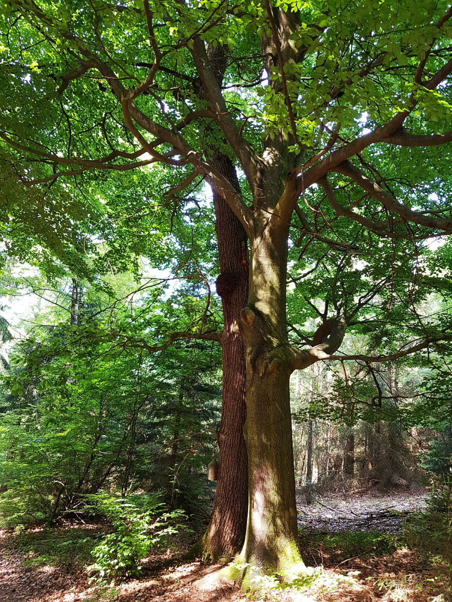 ![]() (Foto: Moni) Diese Botschaft an Amerika und die ganze Welt. Man kann ganz verschieden sein und dennoch friedlich zusammen stehen. Genau wie diese beiden Bäume ... hier wachsen eine Eiche und eine Buche nebeneinander, ohne sich dabei zu behindern. |