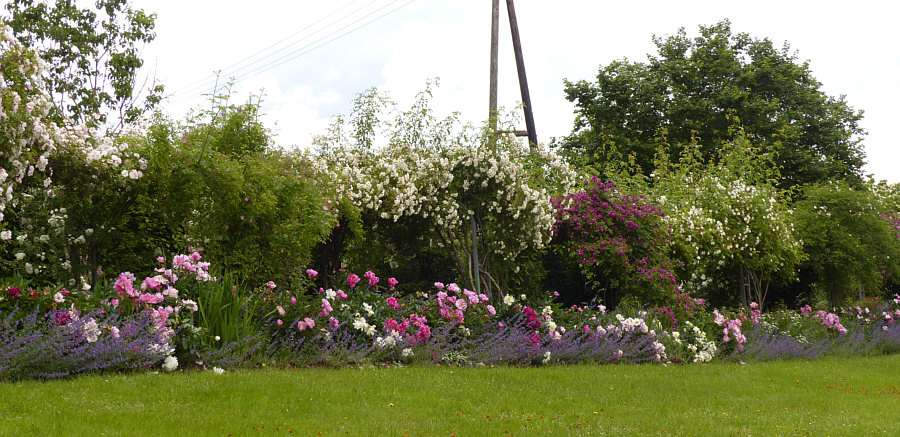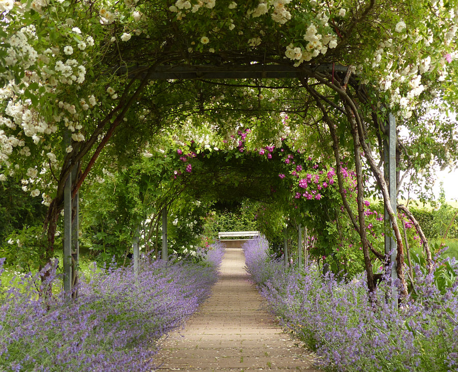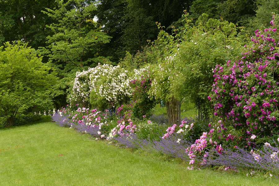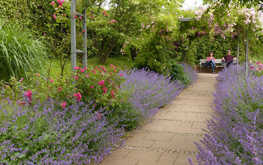 Wir sind heute im Freizeitzentrum Finkenrech. Ein Umwelt- und Freizeitzentrum mit verschiedenen Gartenanlagen. Heute schauen wir uns mal in dieser Ecke um ... ![]() ... was wir da sehen, ist die Bepflanzung, die rechts und links ... ![]() ... von einem Weg zu finden ist. Man kann also hinter den Blumen entlang laufen. Die Blumen beidseits des Weges, das sind ... ![]() ... Rosen, Pfingstrosen und Katzenminze. ![]() Ich zeige Euch mal den Weg ... es ist alles andere als leicht ... ![]() ![]() ... ihn ohne Menschen zu fotografieren. Also habe ich mich einfach in die Nähe dieses Ehepaares gestellt und bin stehen geblieben und habe gewartet. Dann sind sie auch bald aufgestanden ... ob jetzt wegen mir ... ich weiß nicht. Aber egal ... ich habe mich dann auf die Bank gesetzt. Und gewartet, bis Beate kam ... denn die war noch am Fotografieren. Dann habe ich Beate gebeten ... sich auf die Bank zu setzen ... und ich bin dann den Weg bis fast nach ganz hinten gelaufen ... ![]() ... und dabei von Beate fotografiert worden ... und kurz, bevor ich selbst fotografieren wollte, stand Beate auf und ging zur Seite, so dass ich mein gewünschtes Foto machen konnte. ![]() Hmm ... ich kann mir nicht helfen ... auch wenn die Bank leer ist, stört sie mich. Weil sie mein Auge so sehr auf sich lenkt ... dabei soll doch mein Augenmerk auf den Blumen rechts und links und über dem Weg liegen. Ich retuschiere mal die Bank: ![]() Und noch mal von weiter weg, so dass man die Länge des Weges sehen kann: ![]() Später hatte ich noch eine interessante Begegnung ... eine Frau wollte gerade ihre Mutter fotografieren und sagt zu ihr "stell dich mal da vorne hin ... mit Menschen auf dem Bild ist es schöner". So unterschiedlich sind die Menschen ... ich will ein Bild ohne Menschen machen, andere wollen Menschen mit aufs Bild haben. Manche fotografieren eine volle Bank, manche warten bis sie leer ist und manche machen sie weg ;). Aber egal ... es ist etwas ganz besonderes, diesen Weg zu laufen. |